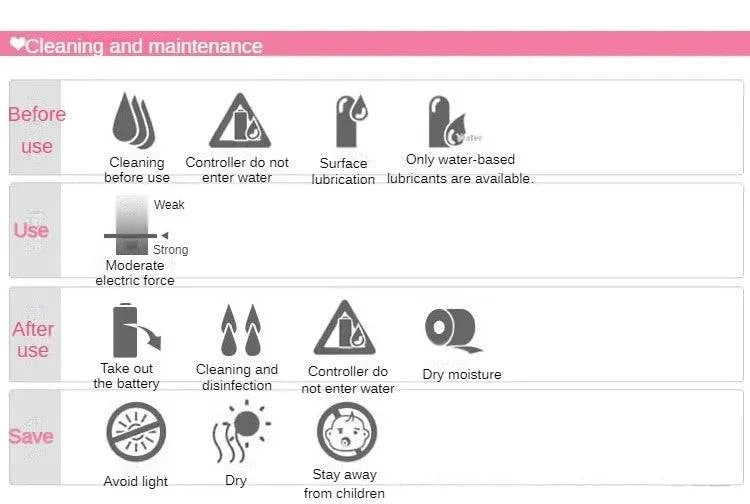 Clean thoroughly before and after use with warm water and mild soap or toy cleaner.